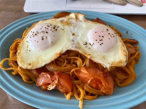 2021-02-04 お昼だぜバリラのこれ FOOD&DRINKS FOOD-手作り お昼だぜ 今日はバリラのリングイネ これが本当の目玉焼きだぜ‼️ がははは‼️ 味は げきうまだせ!! がははは またあとでな あばよ‼️