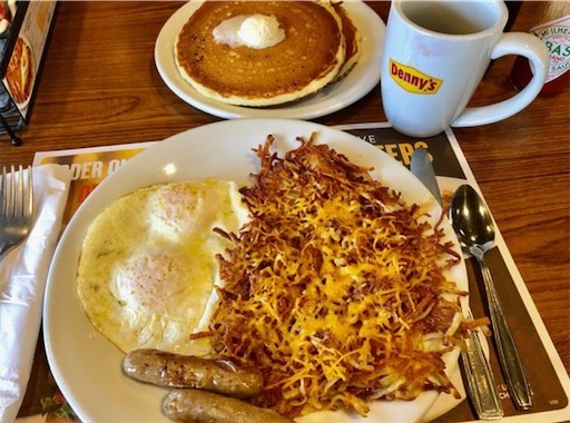 スクランブルエッグでホワイトでハッシュブラウン